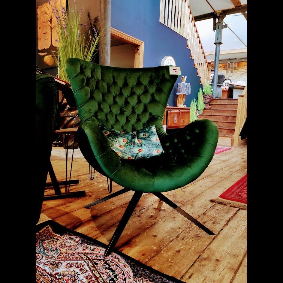 Accent Buttoned Egg Chair in Emerald Green Velvet