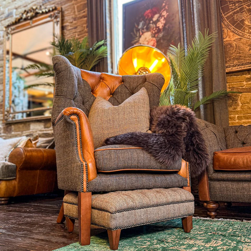 A fusion of beautiful heritage design and countryside chic. Harris Tweed has long been the choice of the discerning from the gentry of the 18th century to today’s catwalks and couturiers. The Chessington range comes in two Harris Tweed finishes, Grey or Gamekeeper Thorn Tweed. Made from 100% pure wool, the armchair is hardwearing; warm in winter and cool in summer, it resists water, cleans easily and is incredibly soft to touch. Separate pigments of wool are carefully blended into special 'recipes' before being spun. The wool is handwoven by Islanders of the Outer Hebrides, with skills passed down from generation to generation.