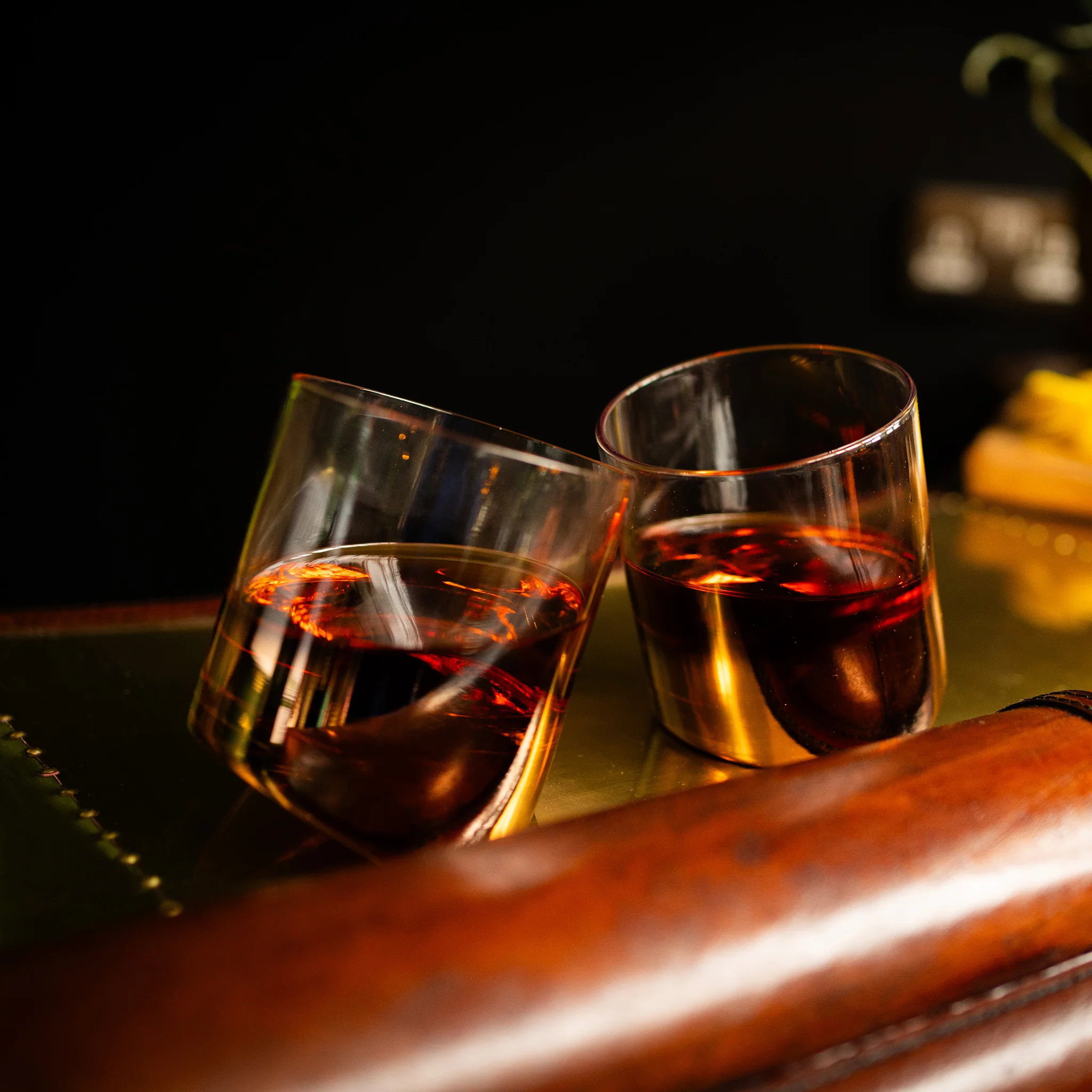 The Decanter Bronze Base Tipsy Tumblers combine sleek sophistication with playful charm. Each tumbler is beautifully crafted with a rich smoked bronze base, giving it a warm metallic glow that catches the light and elevates any setting. The unique “tipsy” silhouette brings a subtle tilt to the glass, making it an instant conversation starter at dinner parties or casual gatherings.