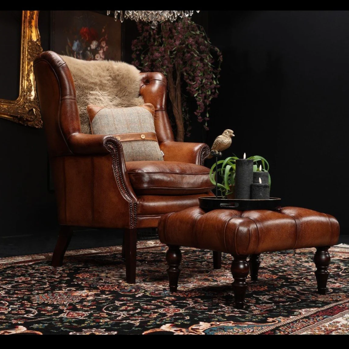 - Finished to the highest standard with beautiful design detailing. The footstool features a luxurious deep buttoned top and leather piping for timeless elegance.